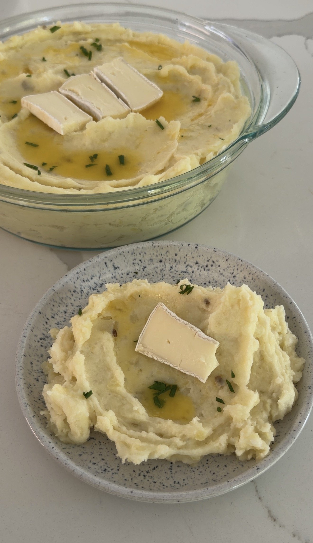 TIP: make sure your brie comes to room temperature so that it melts easily into the mashed potatoes