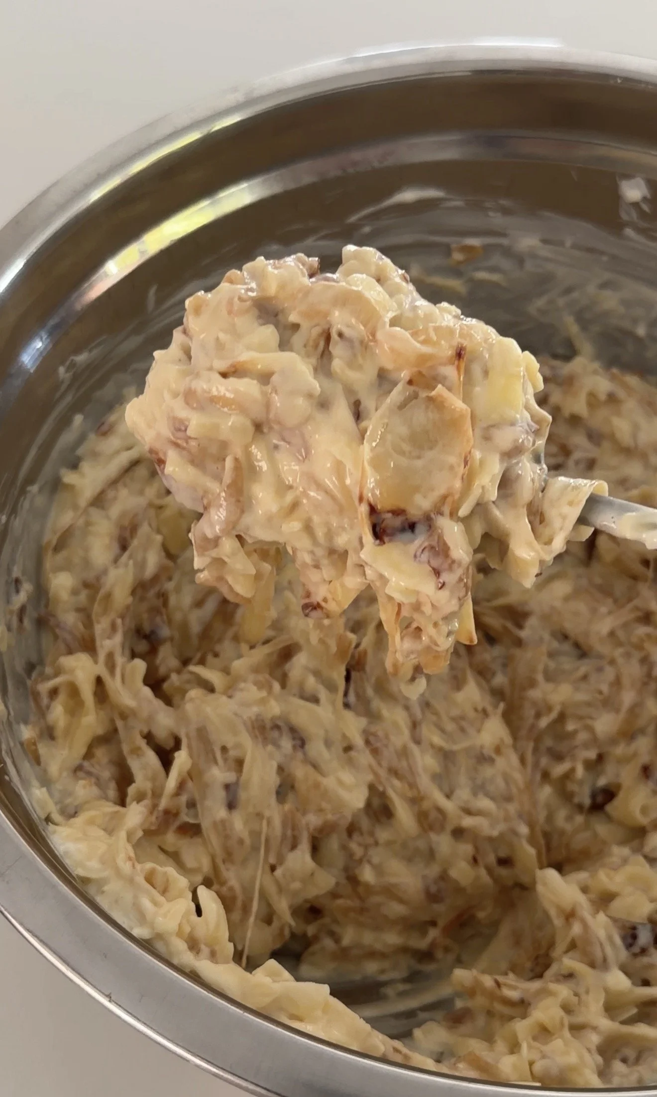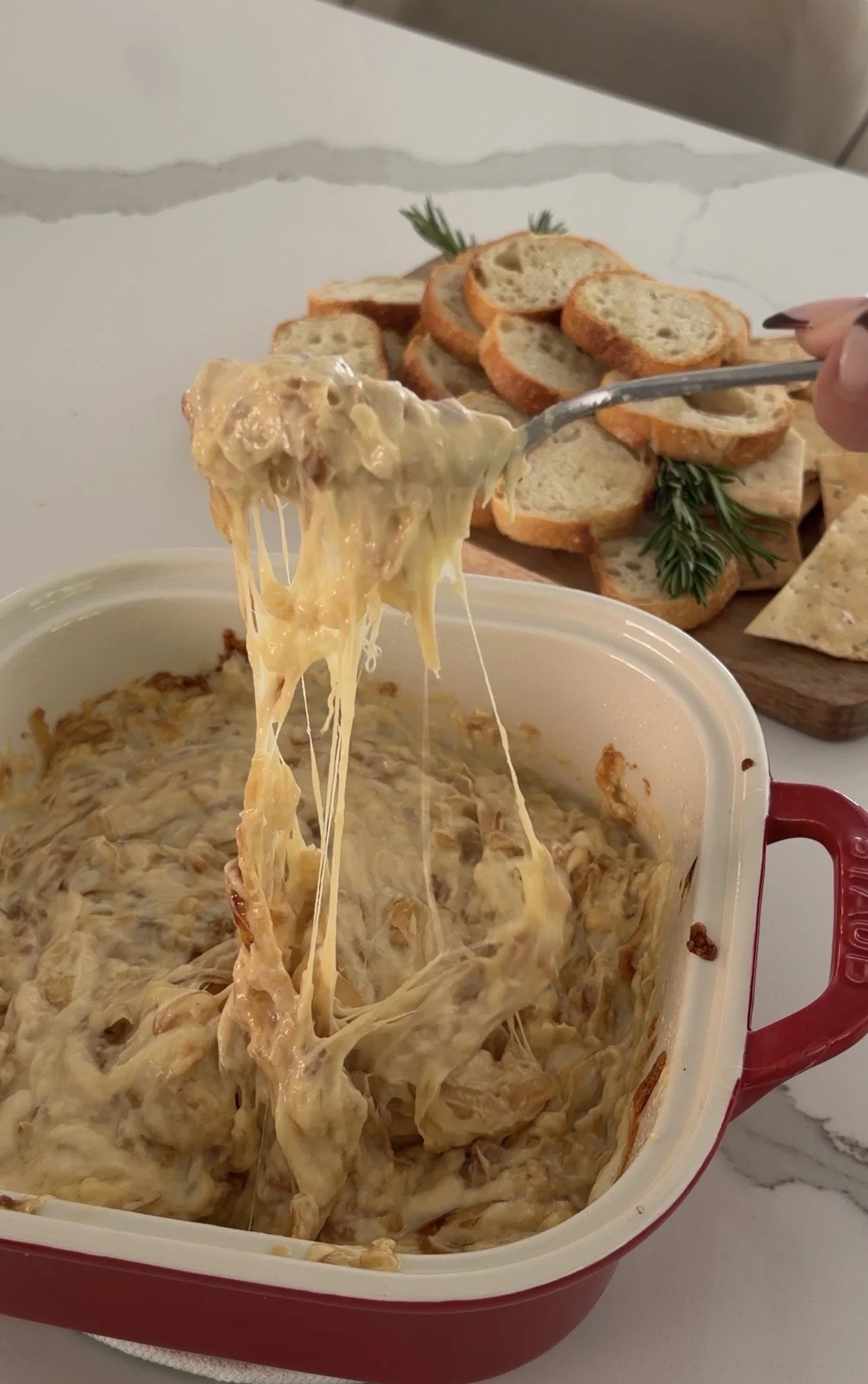 You know it’s a good recipe when auth Donna has been making this for years. My aunt Donna (which is actually my husbands aunt but I call her my aunt because at this point we should be throwing dinner parties together considering how AMAZING she also is at hosting and making good food). She is the creator of the famous broccoli cheddar dip and now has share her caramelized onion dip with me to share with all of you. This one is a MUST make. It is one of those appetizers that always impresses a crowd! 🧀 🧅