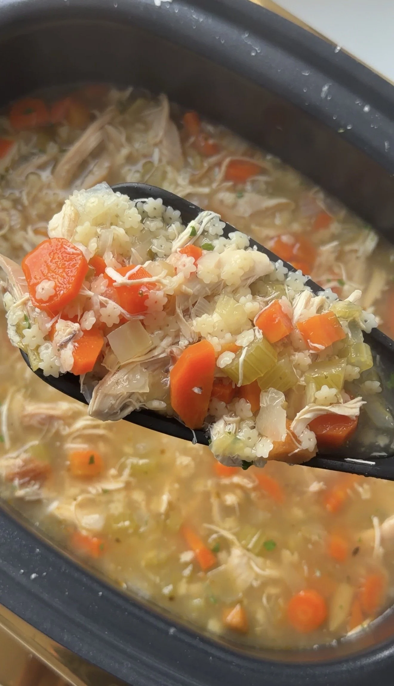 - After everything has cooked together, add in your Pastina or noodles of choice (I always add these in at the end so they don't overcook and they cook to El Dente). Cover slow cooker and cook pasta noodles with the soup for 20-30 minutes