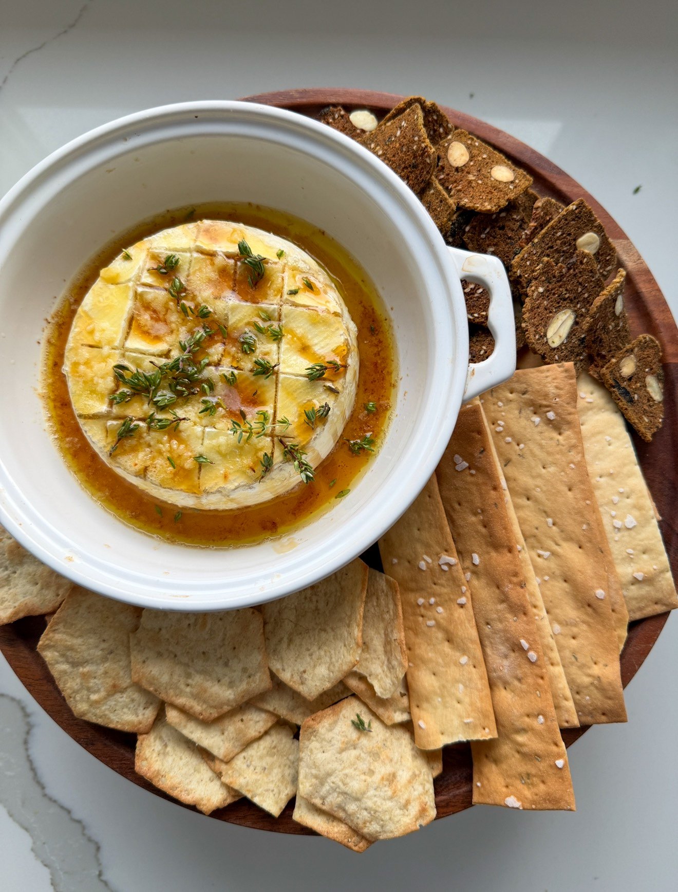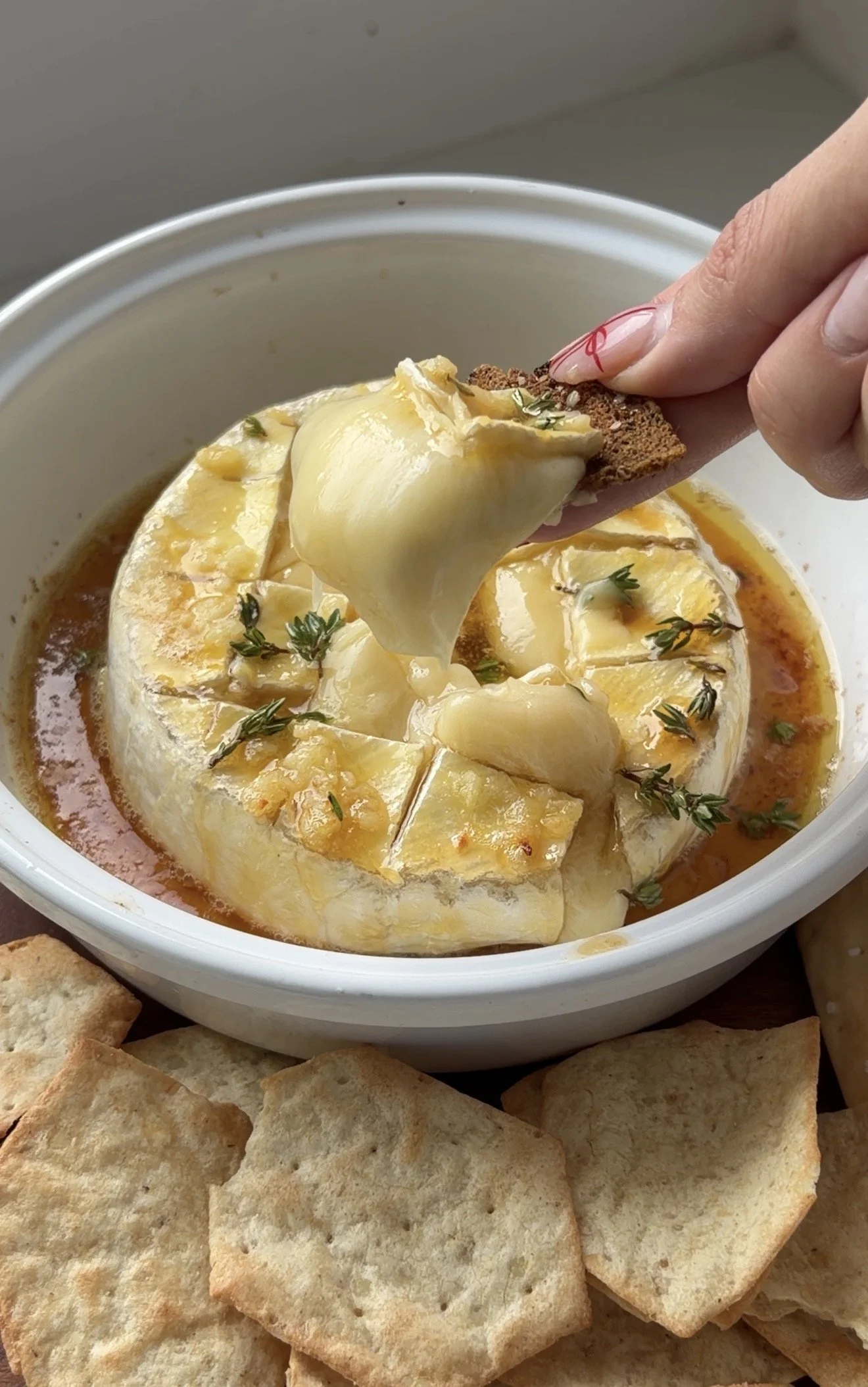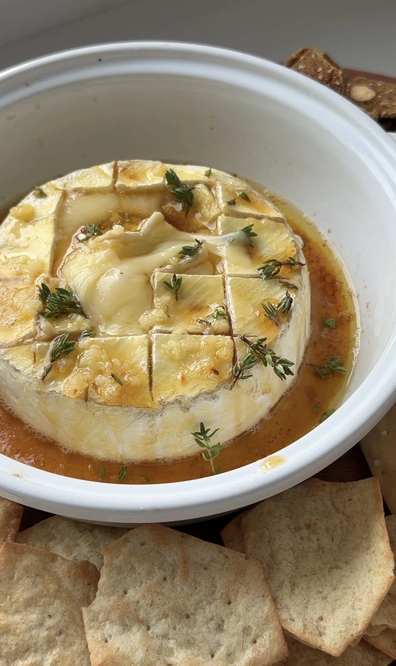 Quality of brie cheese matters! I always recommend using a brie cheese that is French- brie cheese originated in France so if it is French you know it’s creamy, has notes of mushroom and will melt really well! When melted the cheaper brie cheeses can often pool with oil which means they aren’t the best quality and stuffed with fillers & additives. When making baked brie, spend a little bit more on the cheese to make sure it’s a quality one.