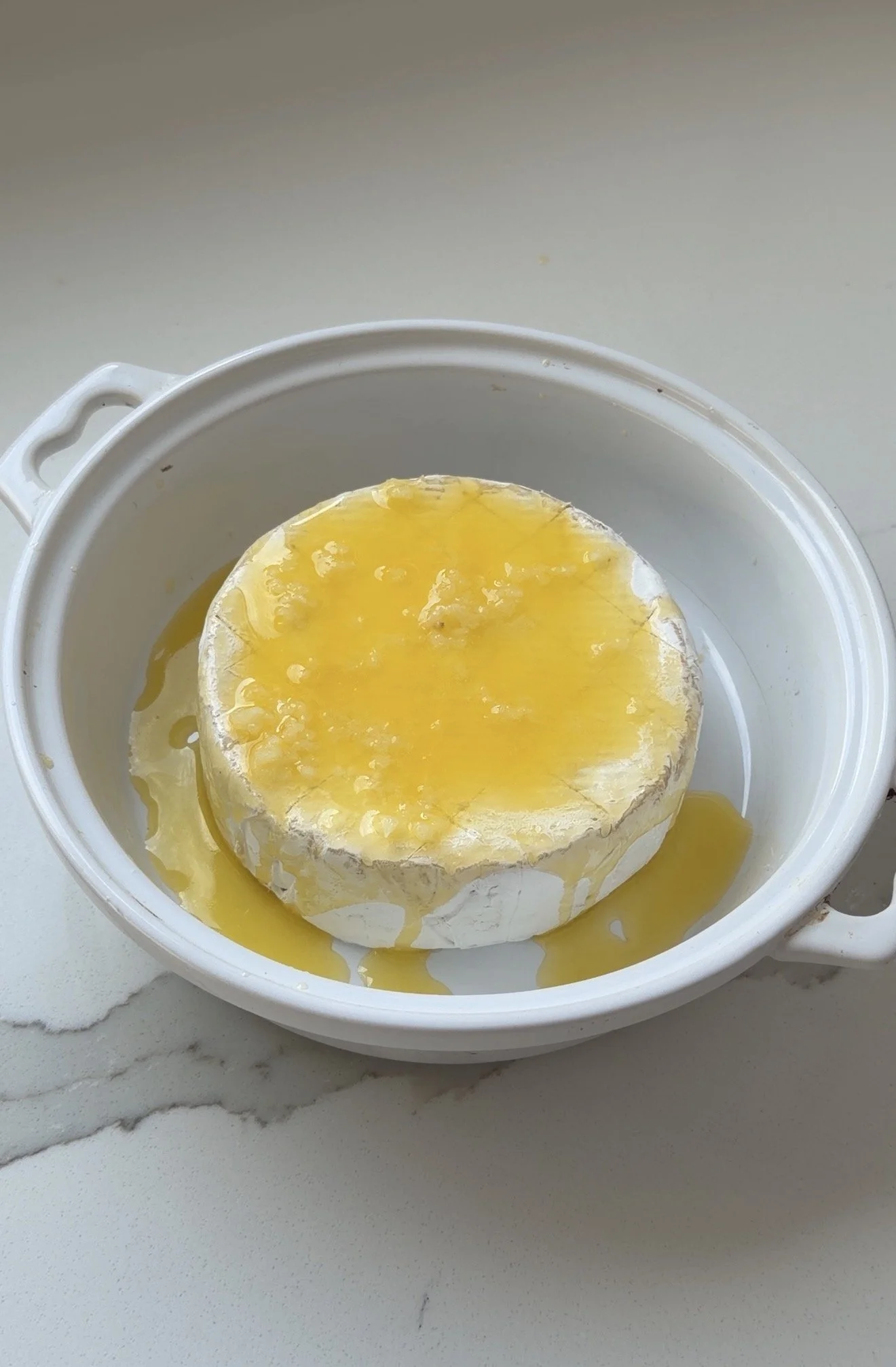 For the honey drizzle, add this on after baking! THIS IS KEY! If you bake honey it actually looses any of it nutritious properties and becomes all watery and leaky which will make the baked brie look and taste not so pleasant. Always add on honey AFTER the cheese bakes.
