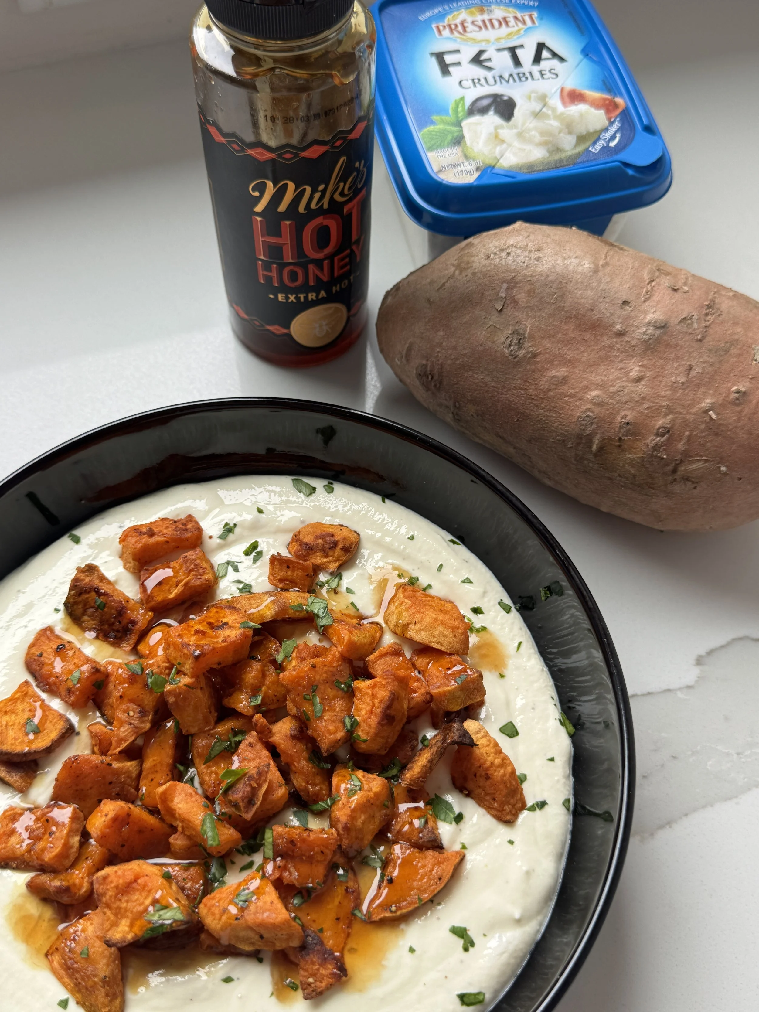 Ingredients for Hot Honey Whipped Feta with Sweet Potatoes