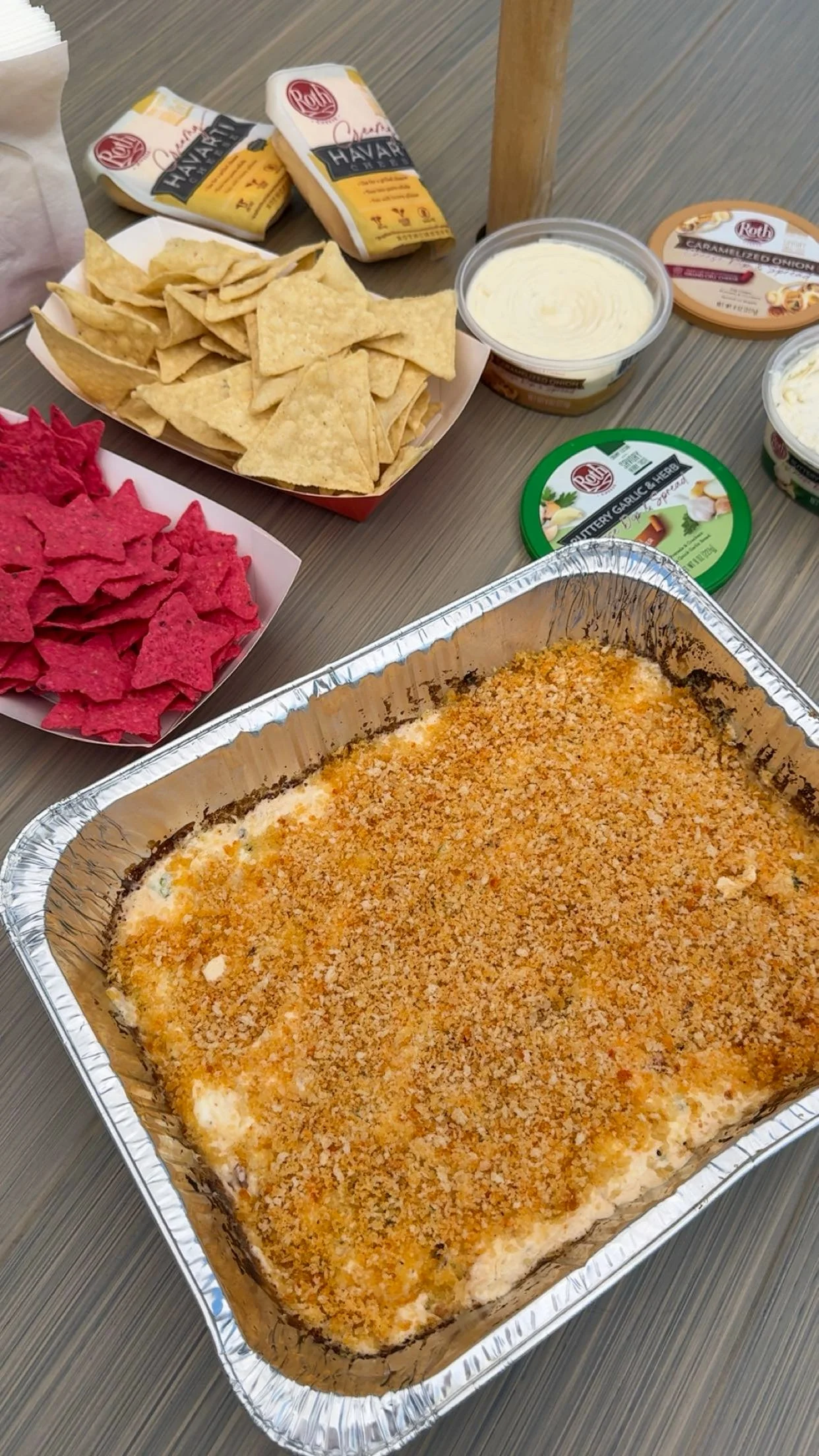 - Add panko bread crumbs on top in the last 1 minute of cooking if you'd like a crispy top and serve right away with tortilla chips & veggies!