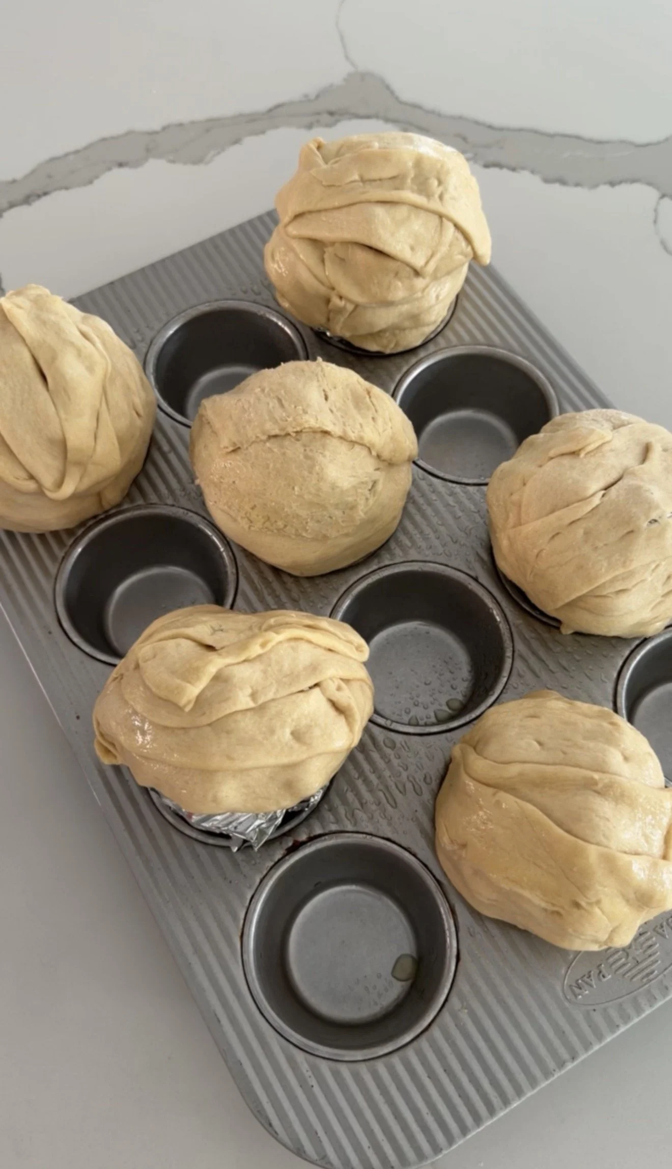 - Spray olive oil on the outside of your foil balls as this will prevent the dough from sticking. *do NOT skip this step* very important so that the dough doesn't stick to the foil while it bakes